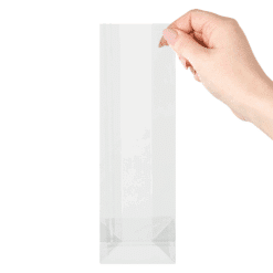 Transparante blokbodemzakjes voor het verpakken van bijvoorbeeld frietbakjes als leuke kindertraktatie.
