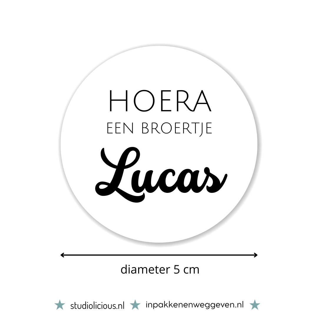Krijgt jouw zoon of dochter binnenkort een broertje? Deze naamsticker is super leuk om geboorte traktaties mee te personaliseren. Je kunt deze stickers apart bestellen, of in combinatie met kant en klare geboortetraktaties uit onze webshop.