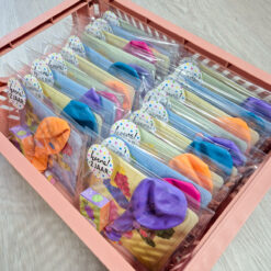 Gepersonaliseerde stickers bestel je er apart bij. Wanneer je aanvinkt “Ja, ik wil een gepersonaliseerde sticker op mijn traktaties”, zullen we deze direct voor je op de traktaties plakken.